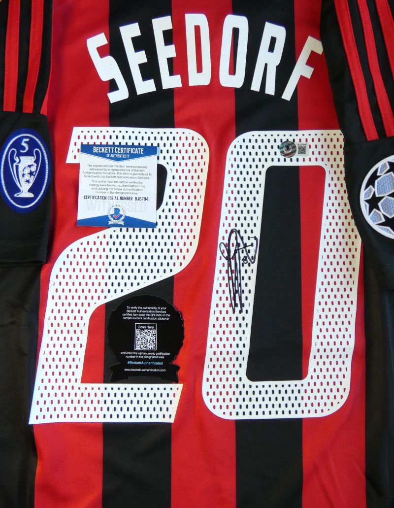 Op het rugnr vind je zijn handtekening die hij heeft gesigneerd en is waargenomen door een vertegenwoordiger van de betrouwbare COA leverancier Beckett. Op het certificaat en hologram (QR-code) wat zich aan de achterkant bevindt. Staat een certificering nummer wat gecontroleerd kan worden op de toebehorende website. Incl. CL emblemen.
