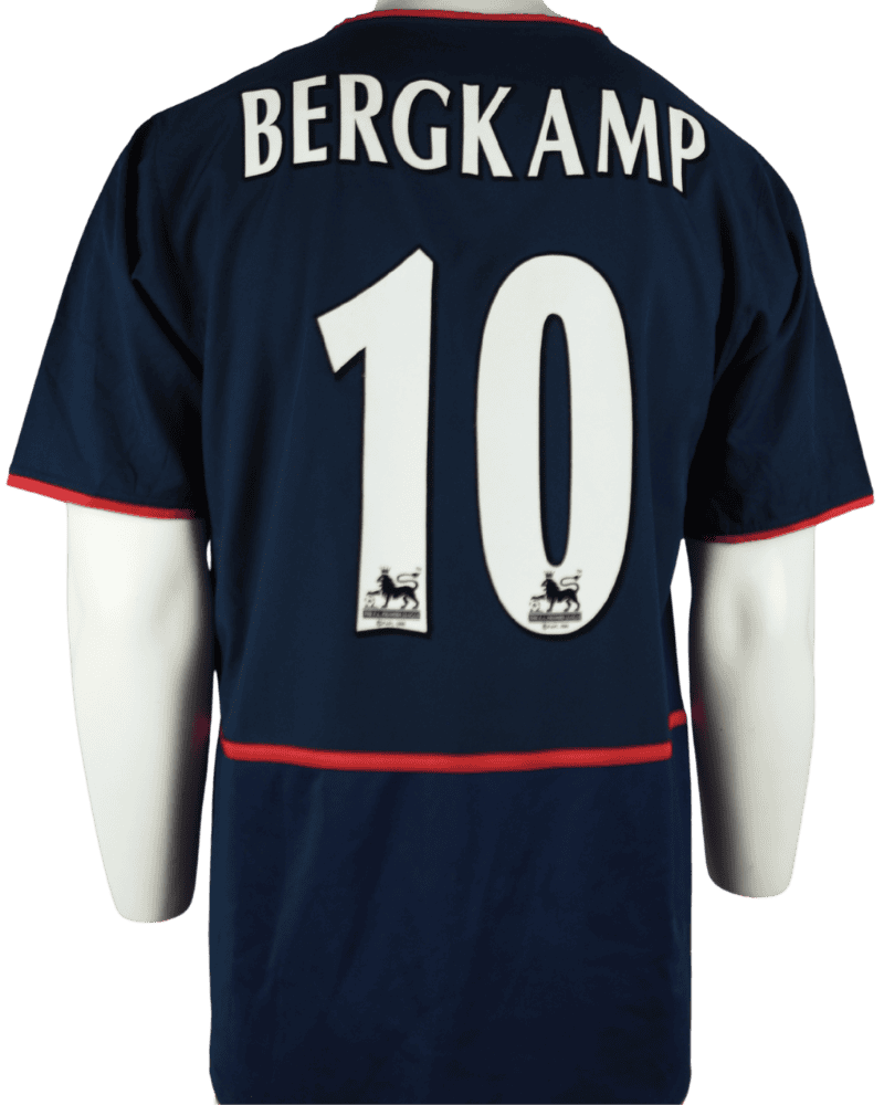 Achterop het shirt naam en rugnummer van Dennis Bergkamp. De top aanvaller speelde in totaal 423 wedstrijden voor Arsenal waarin hij 110 keer scoorde.