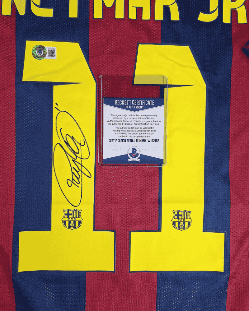 Op het rugnummer vind je zijn handtekening die hij heeft gesigneerd en is waargenomen door een vertegenwoordiger van de betrouwbare COA leverancier Beckett. Op het certificaat en hologram wat zich aan de achterkant van het shirt bevindt. Staat een certificering nummer wat gecontroleerd kan worden op de toebehorende website.