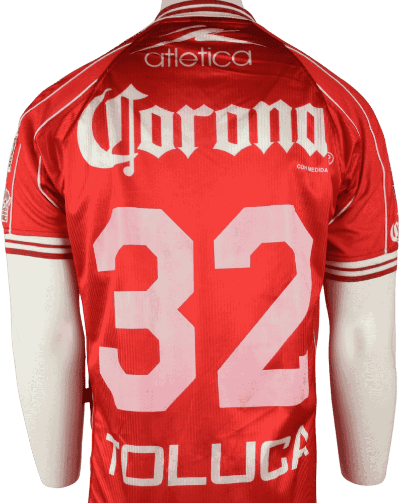 Dit is een matchworn thuisshirt van de Mexicaanse club Deportivo Toluca, seizoen 99/00. Achterop het shirt rugnummer 32 van verdediger Emilio Viades.