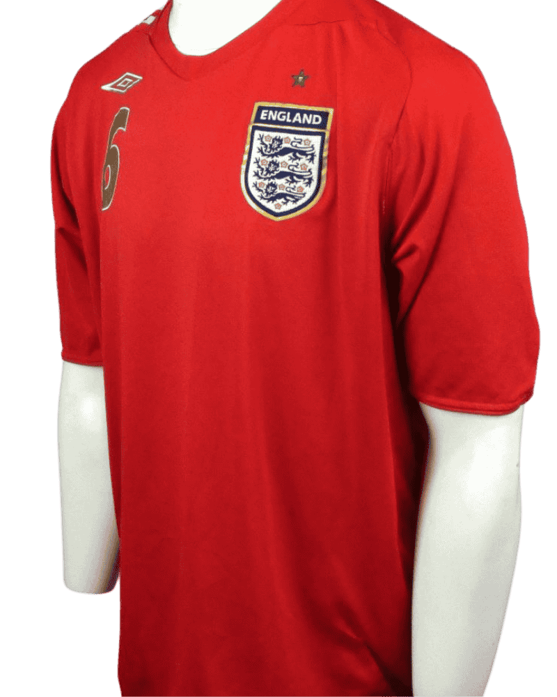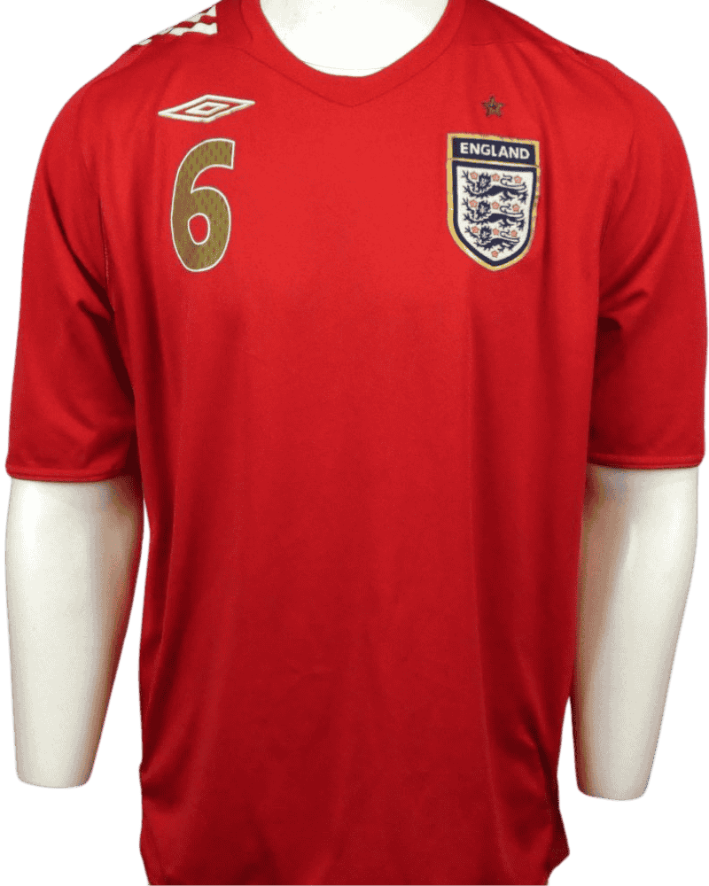 Dit is een uitshirt van Engeland, uit de periode 06-08. Achterop het shirt de naam en het rugnr van de Londenaar, John Terry. Hij speelde in totaal 78 interlands voor Three Lions.
