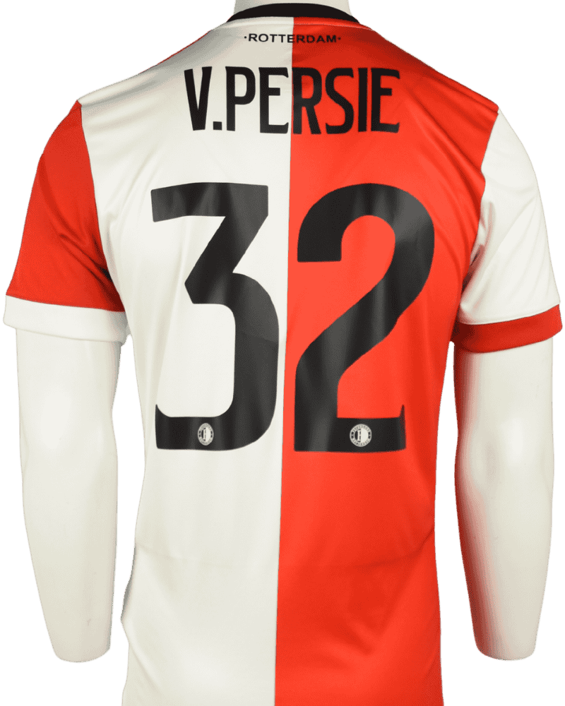 Achterop het shirt de naam en het rugnummer van Robin van Persie. De voormalig top aanvaller speelde in totaal 123 duels voor Feyenoord waarin hij 46 keer tot scoren kwam.