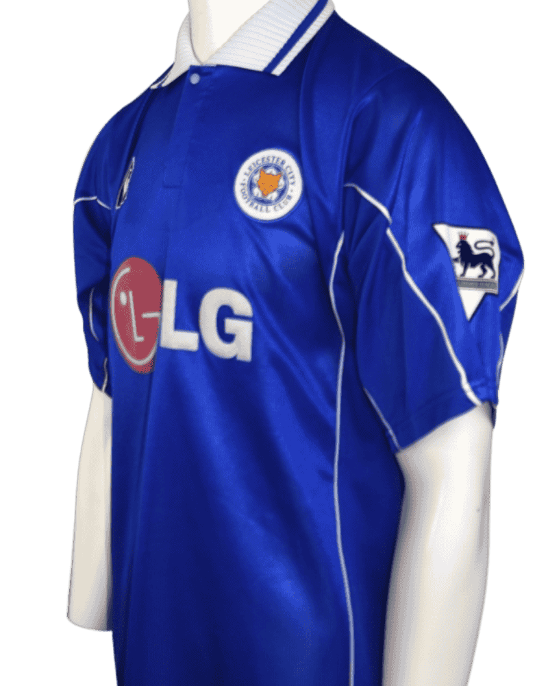 Dit is een Vintage thuisshirt van Leicester City, FC uit seizoen 01/02. Incl. PL Embleems.