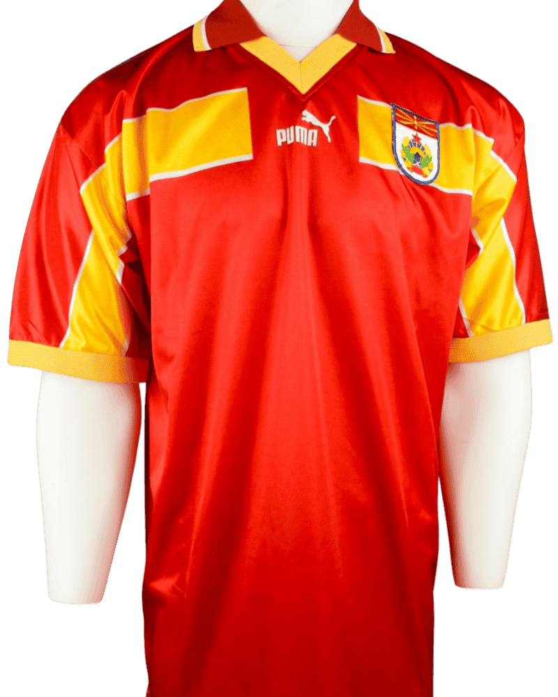 Dit is een uniek vintage thuisshirt van (Noord) Macedonië, uit de periode 1998-01.
