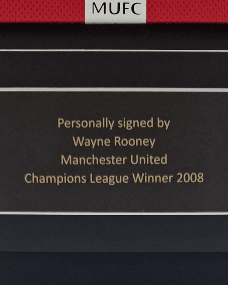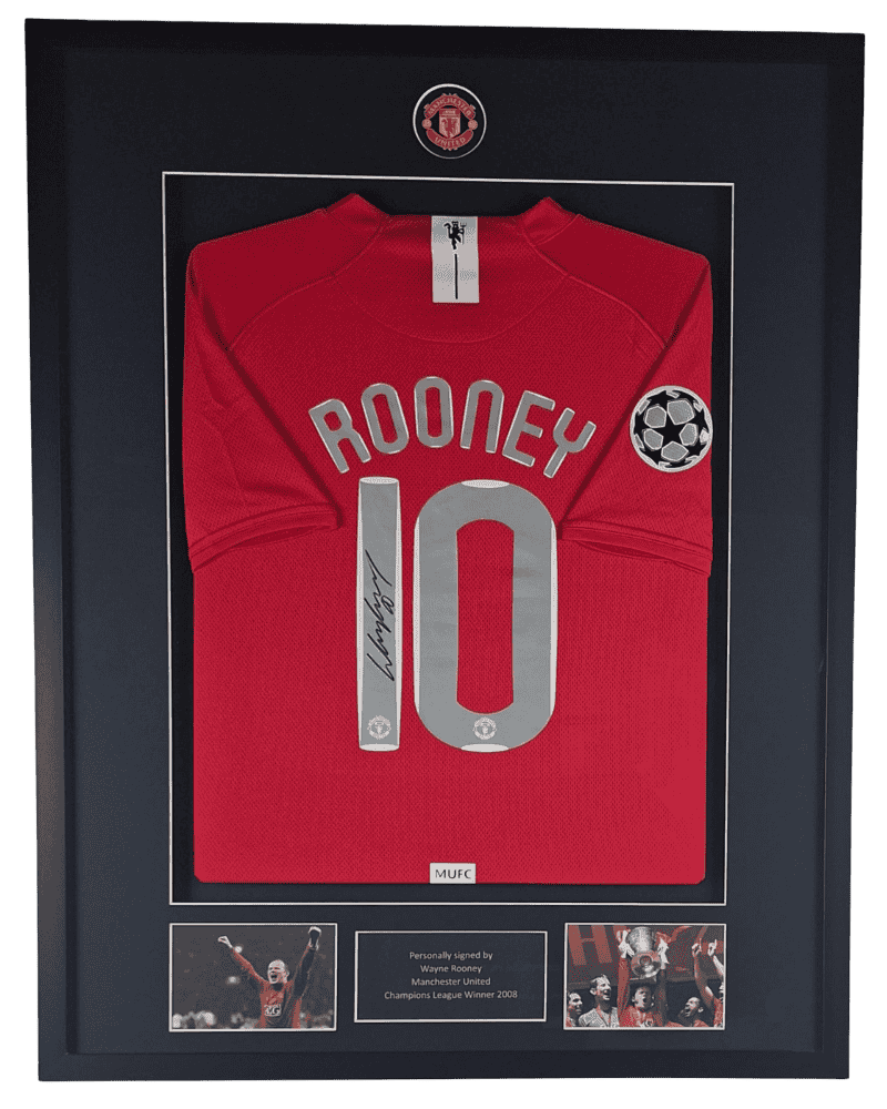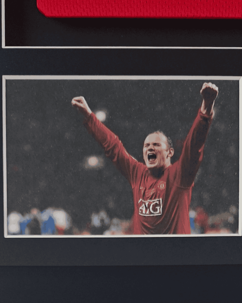 Manchester United Ingelijst thuisshirt CL finale 2008 Gesigneerd door Wayne Rooney (Incl. certificaat & tekenfoto)