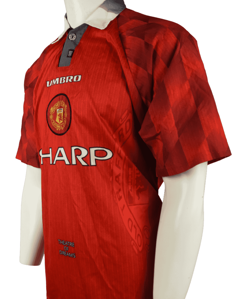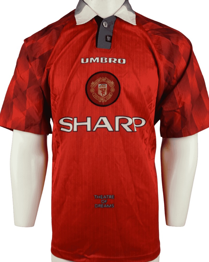 Dit is een vintage thuisshirt van Manchester United, uit de periode 96/98.