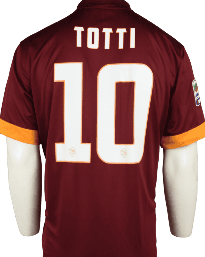 Achterop het shirt de naam en het rugnummer van clublegende Francesco Totti.