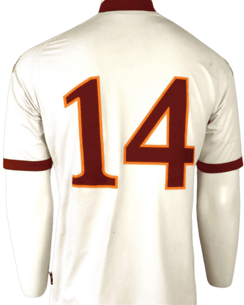 Achterop het shirt het rugnummer 14 van Ricardo Faty. De Frans-Senegalese verdediger speelde 19 wedstrijden voor Roma waarin hij niet wist te scoren.