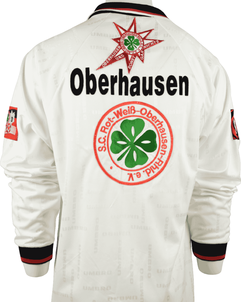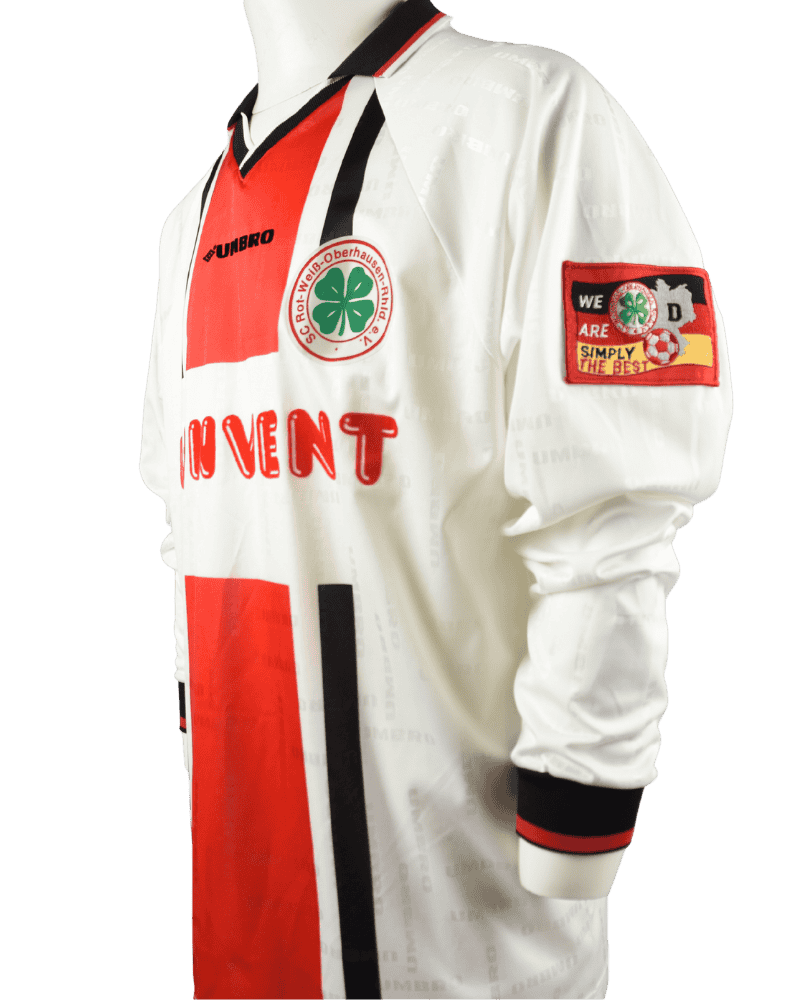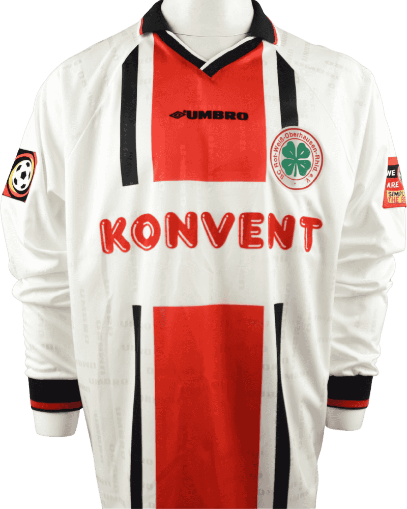Dit is een zeldzaam vintage thuisshirt van Rot-Weib Oberhausen, uit het seizoen 98/99. De club behaalde dat jaar de halve finale van het DFB Pokal.