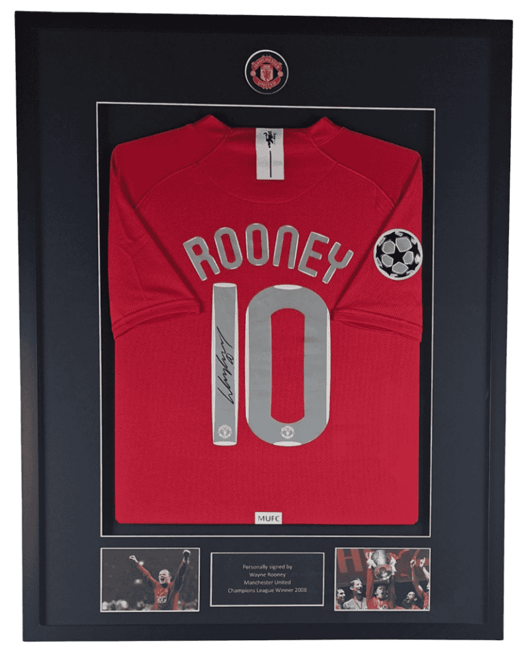 Manchester United Ingelijst thuisshirt CL finale 2008 Gesigneerd door Wayne Rooney (Incl. certificaat & tekenfoto)
