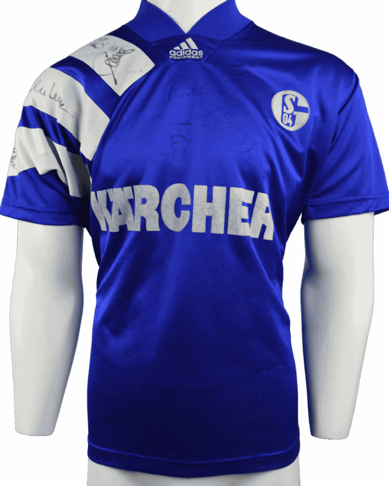 Schalke 04 thuisshirt 1994-1996 gesigneerd door selectie rugnummer 9 maat – M