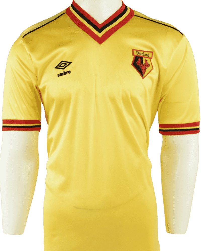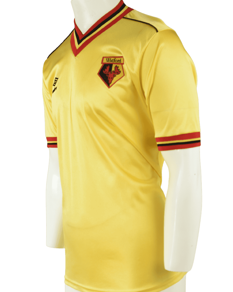 Dit is een zeldzaam vintage thuisshirt van Watford, uit de jaren 82/85.
