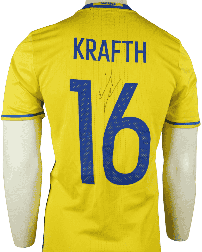 Zweden (wedstrijd gedragen) thuisshirt 2016 gesigneerd door Emil Krafth maat – M