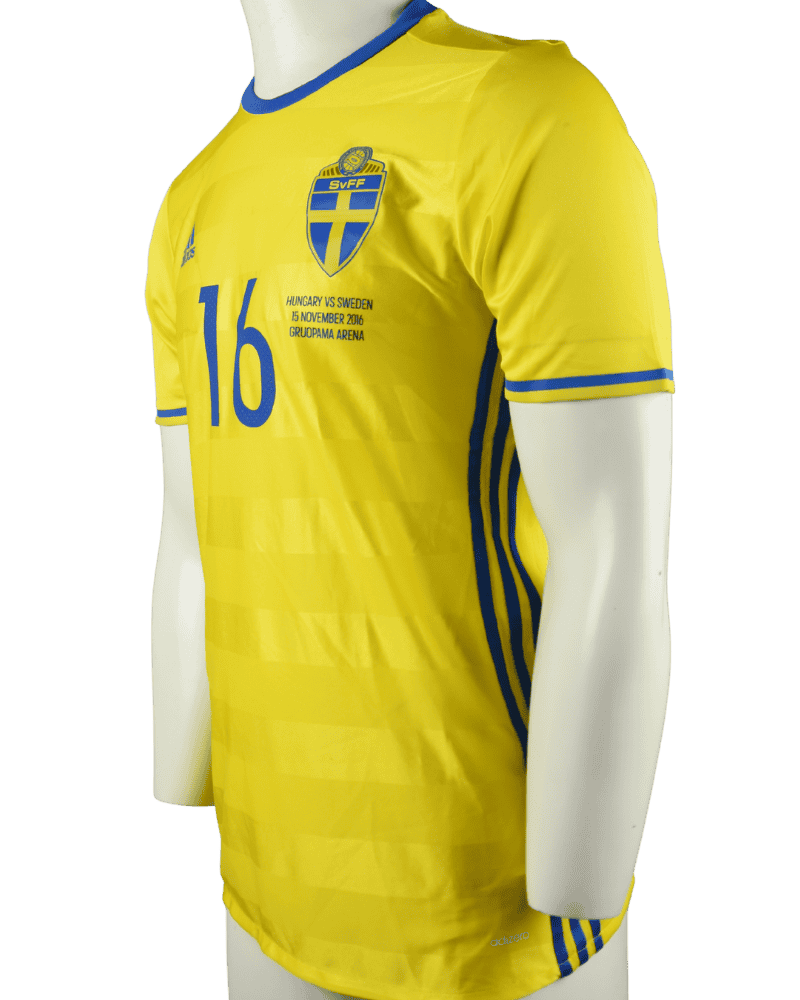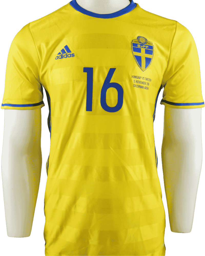 Dit is een matchworn thuisshirt van Zweden, een vriendschappelijke wedstrijd Hongarije 0-2 Zweden. (15-11-16)